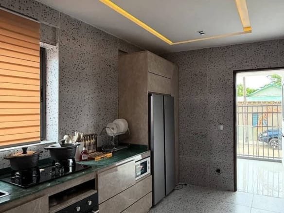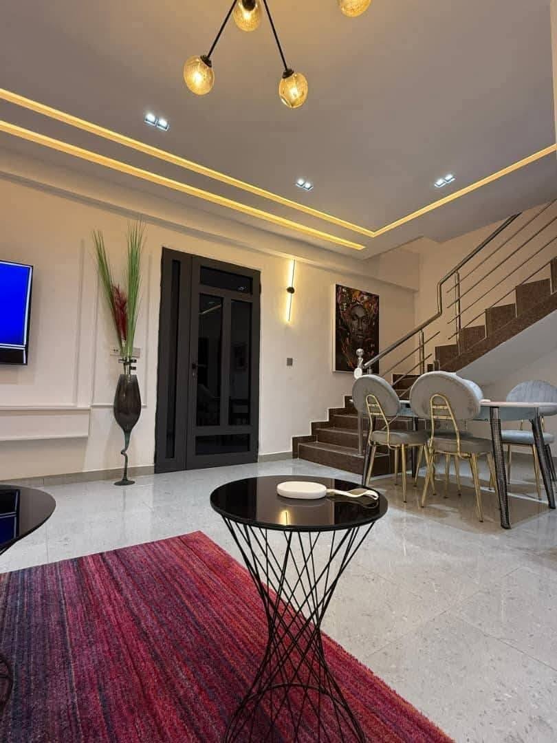 À Fidjrossè Centre, dans un environnement résidentiel privilégié de Cotonou, un appartement duplex meublé haut standing est disponible à la location. Situé à seulement 50 mètres du nouveau goudron et à 5 minutes de la plage, ce logement moderne combine confort, sécurité et commodités de premier plan.