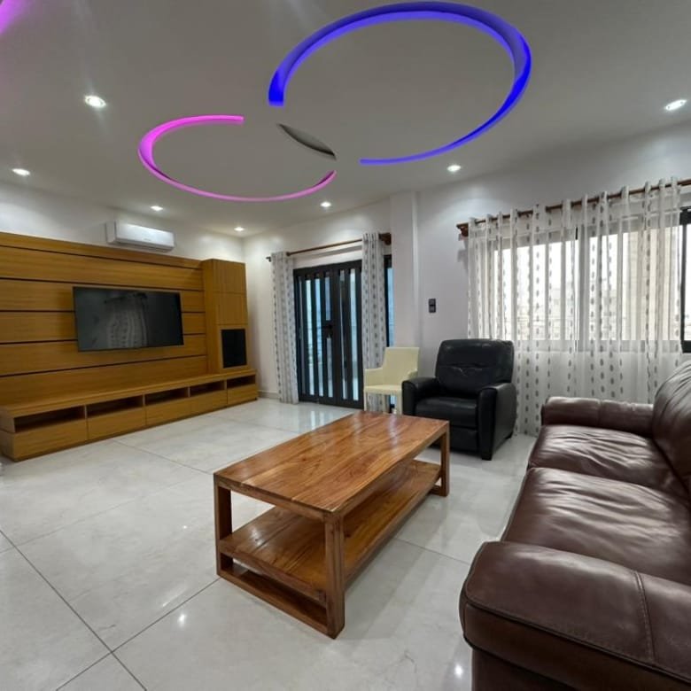 En effet, au premier étage d’un immeuble récemment construit, nous proposons en location un élégant appartement meublé de deux chambres. Chacune des chambres est dotée de sa propre salle de bain, garantissant confort et intimité pour les résidents.
