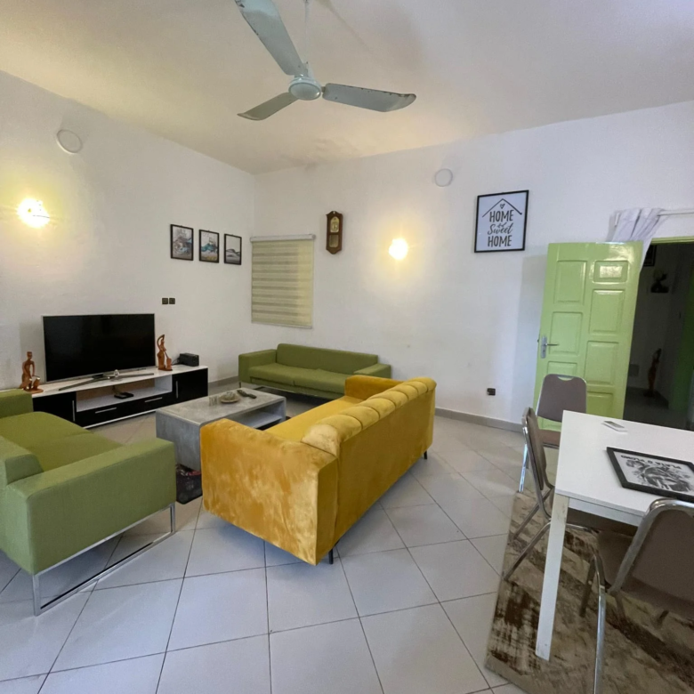 Nous proposons à la location un appartement meublé de 3 chambres salon situé à Fidjrossè Plage, à proximité du Pétanque Bar. Cet appartement, au rez-de-chaussée avec entrée personnelle, offre tout le confort nécessaire pour un séjour agréable.