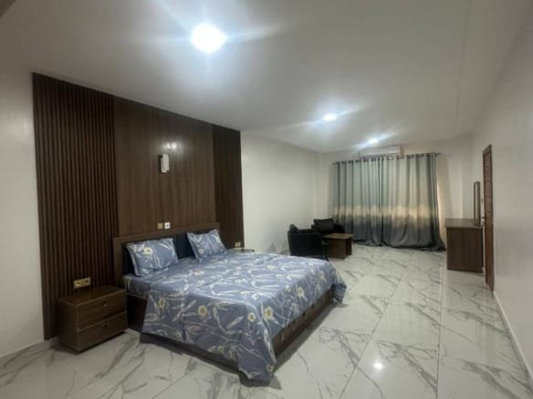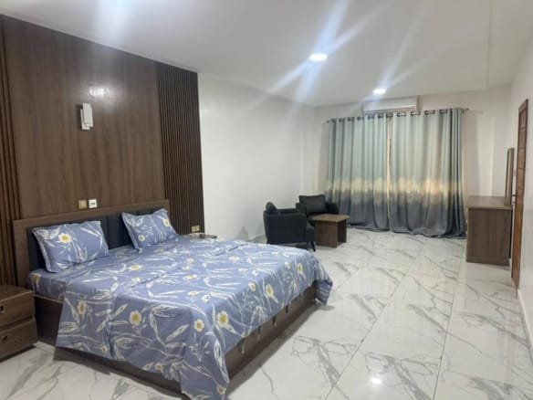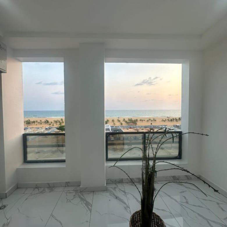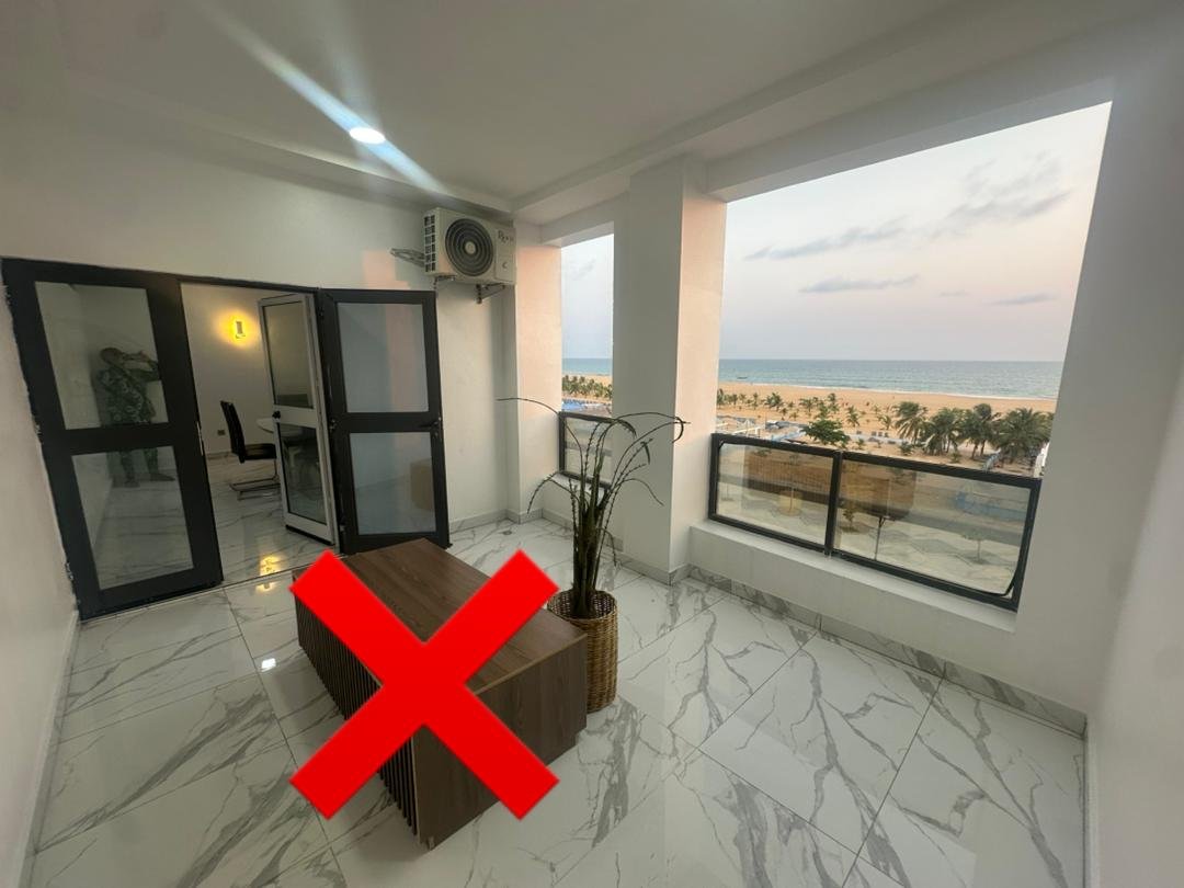 Disponible en location à Fidjrossè plage, un joli appartement meublé de haut standing disponible au 4ÈME étage d’un immeuble situé directement face à la mer avec :