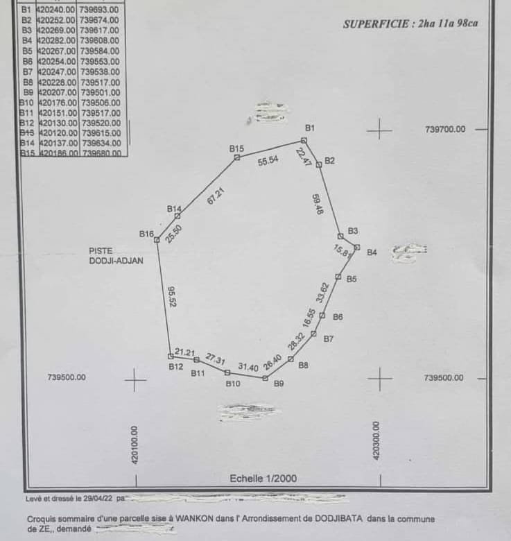 À seulement 10 minutes du goudron, découvrez cette magnifique propriété de deux hectares avec des palmiers sélectionnés, située à Wankon dans Dodji-Bata, à proximité du goudron menant à Zè Centre.