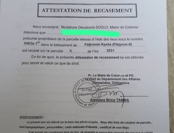 Prix d’une parcelle : 60 000 000 FCFA