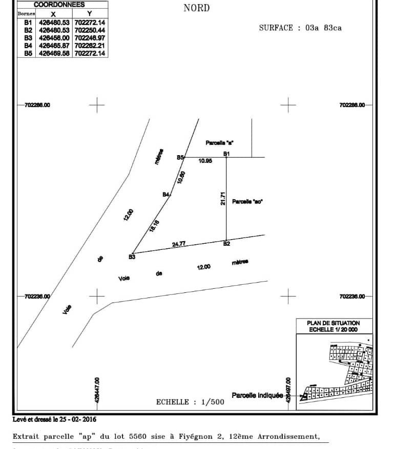 Le prix de vente est fixé à 85 millions FCFA pour l’ensemble des deux parcelles. Ce montant reste cohérent avec la valeur foncière de la zone, en constante évolution. Investir à Fidjrossè aujourd’hui, c’est anticiper la forte croissance de demain et garantir un retour sur investissement durable.