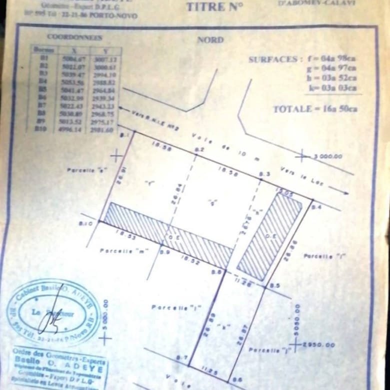 Nous mettons en vente pour le compte d’un propriétaire vivant et en pleine forme, À Calavi dans une rue en face du campus un lot de 4 parcelles. Le terrain à vendre a une superficie totale de 1650m² et dispose d’un Titre Foncier. Le terrain abrite actuellement un complexe scolaire de la maternelle en 3ème avec un effectif de 350 élèves, situé à 100m de la route inter-États.
