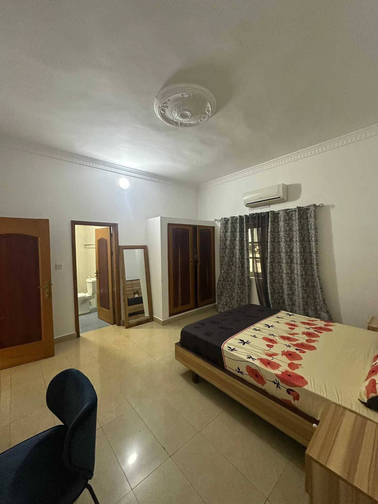 Il est mise en location dans la Haie Vive à 3 minutes de l’aéroport de Cotonou, une entrée personnelle de 4 chambres salon meublé disponible au deuxième étage dans un cadre agréable et très paisible avec :