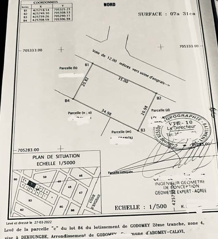 Découvrez cette grande parcelle de 731 m², idéalement située à Dèkoungbé, dans l’arrondissement de Godomey. Avec son emplacement stratégique, à seulement 100 mètres des pavés et de la pharmacie Dèkoungbé, cette propriété est parfaite pour vos projets immobiliers.