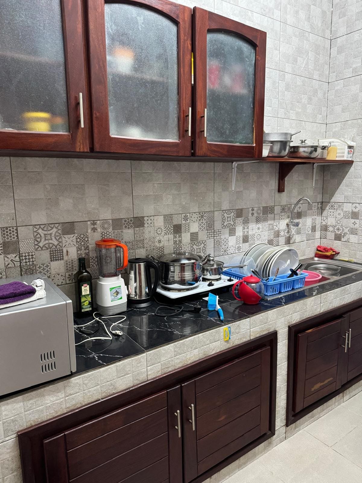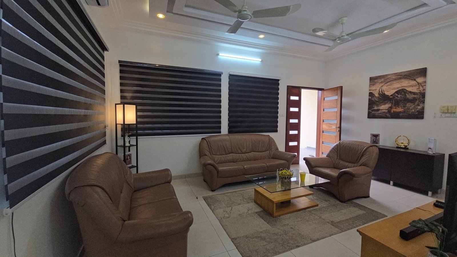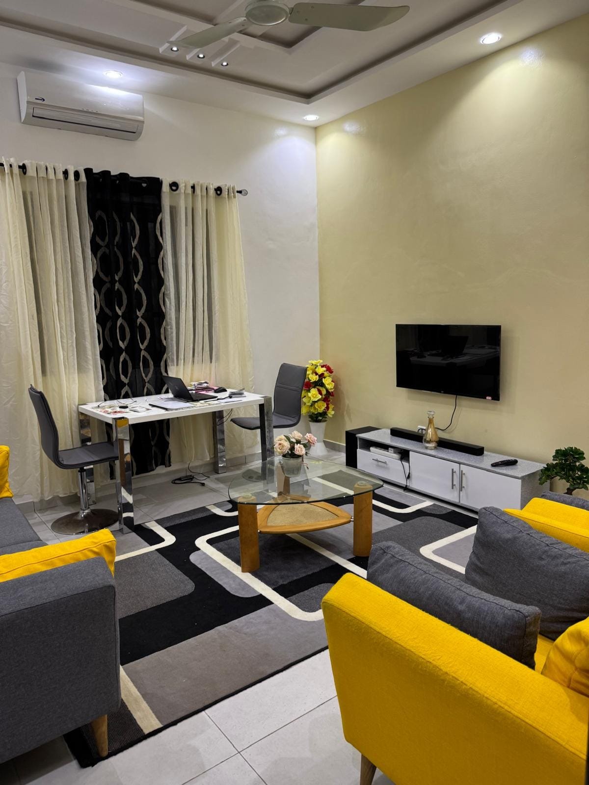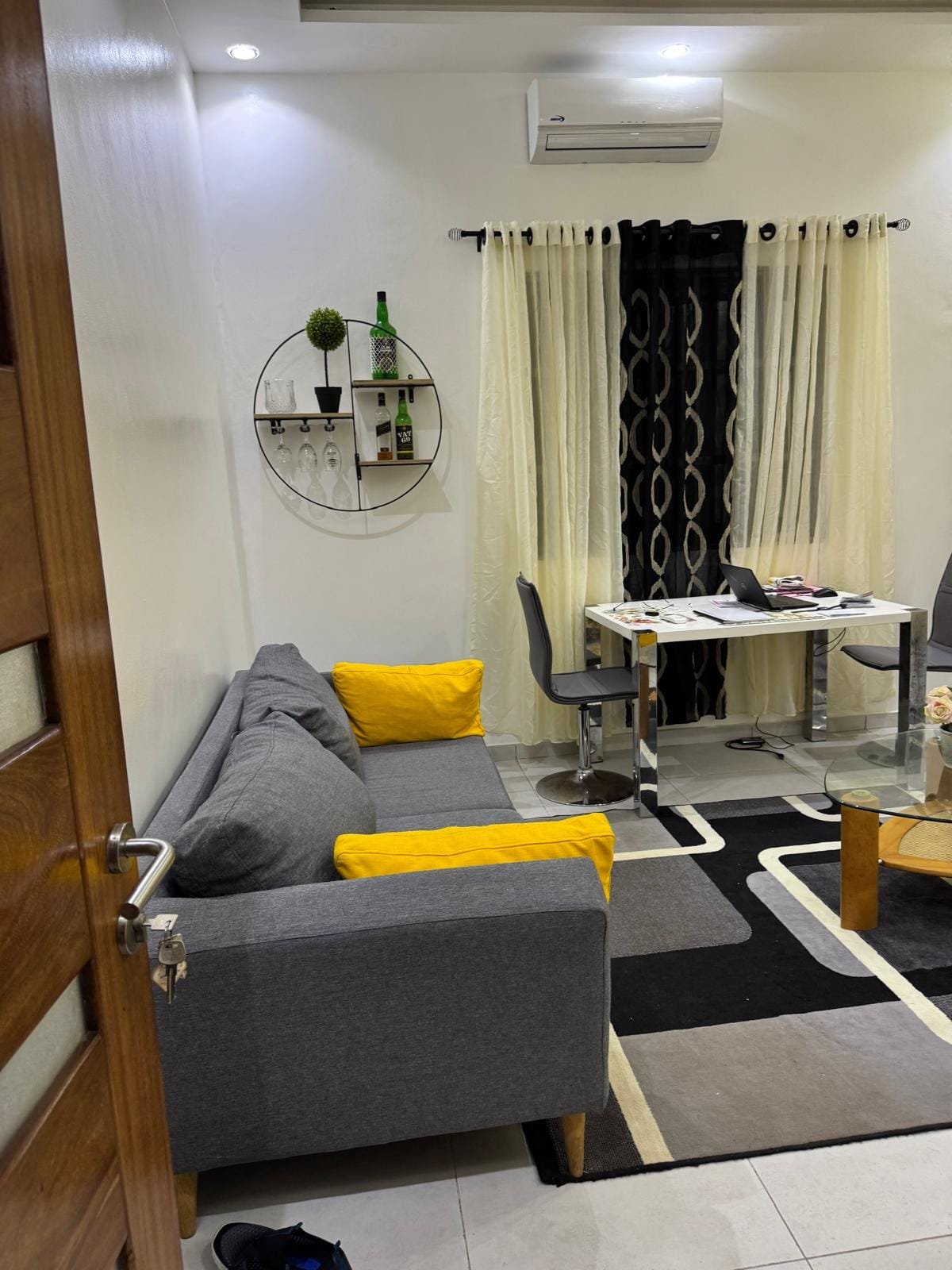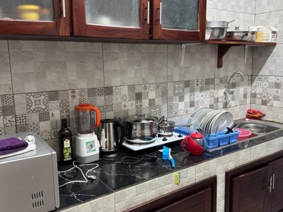 Le bâtiment est meublé et prêt à l’usage, avec un niveau de finition de 95 %. Seules l’installation des ampoules, portes et fenêtres reste à compléter pour l’étage, le rez-de-chaussée est complètement fini. Chaque appartement bénéficie d’un aménagement moderne, fonctionnel et attrayant pour les clients.