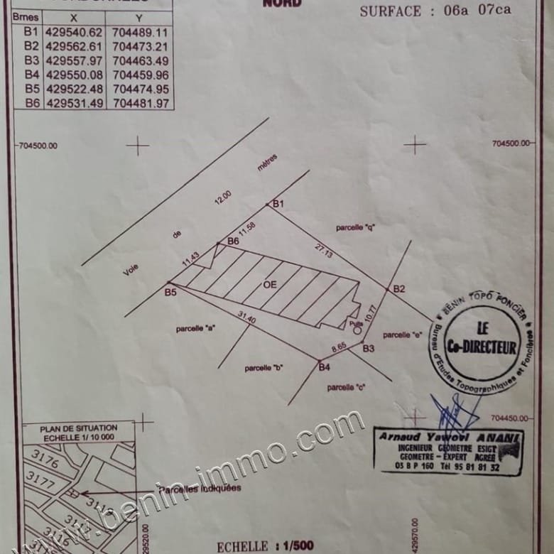 Cette parcelle est idéalement située dans une zone prisée et en pleine expansion, offrant un accès facile à toutes les commodités. La parcelle est également dotée de tous les documents nécessaires, y compris une convention de vente, un certificat de constatation de droits fonciers, une attestation de recasement et un levé topographique.