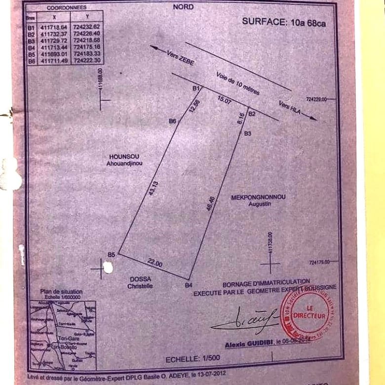 Située dans l’arrondissement de Tori Bossito, précisément au quartier Avamé, cette parcelle de 1.068 m² est désormais disponible à la vente en urgence.