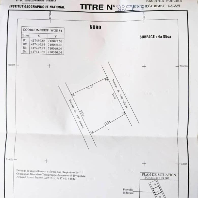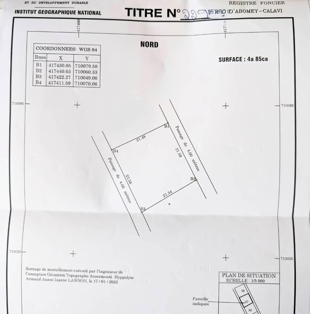 Les documents sont en règle avec un titre foncier personnel.