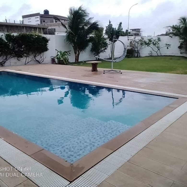 A louer une VILLA PERSONNELLE R+2 de 6 chambres 1 salon meublé climatisé, vue sur mer avec Piscine et grand jardin à Fidjrossè plage non loin du carrefour club des rois.