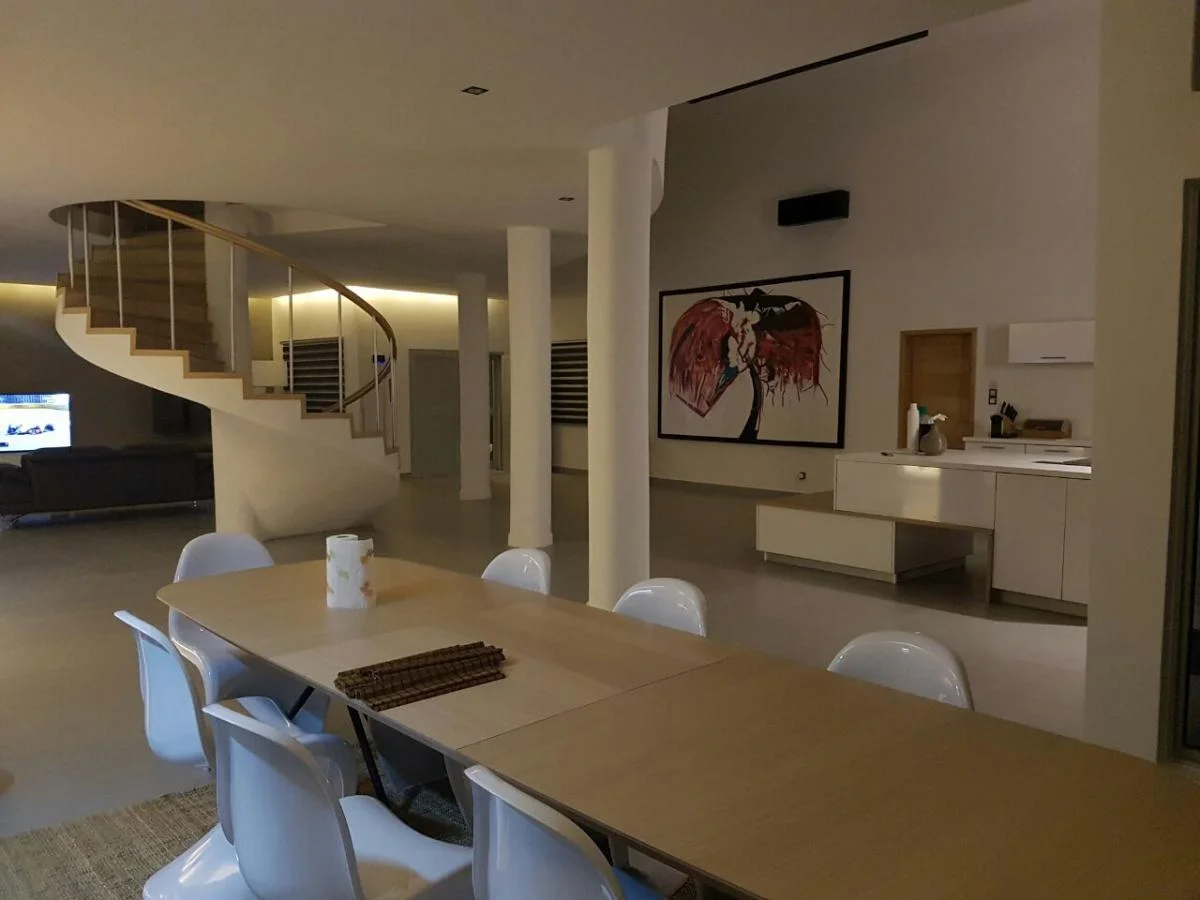 Elle dispose également d’un grand garage pouvant contenir jusqu’à six petites voitures ou quatre 4×4, ainsi qu’une dépendance pour le personnel de maison. Vous pourrez profiter d’une entrée sécurisée avec visiophone.